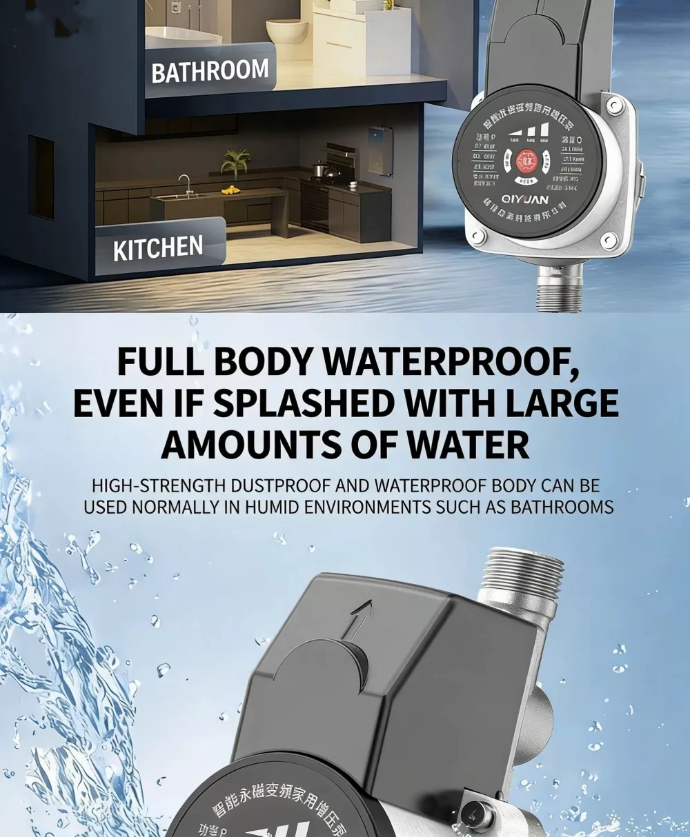 Máy bơm tăng áp im lặng biến tần nam châm vĩnh cửu thông minh, với công nghệ tần số biến thiên nam châm vĩnh cửu chuyên nghiệp, cung cấp giải pháp tăng áp ổn định, hiệu quả và yên tĩnh cho nhu cầu sử dụng nước của hộ gia đình, giải quyết toàn diện các vấn đề khác nhau do áp lực nước không đủ trong gia đình.