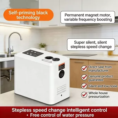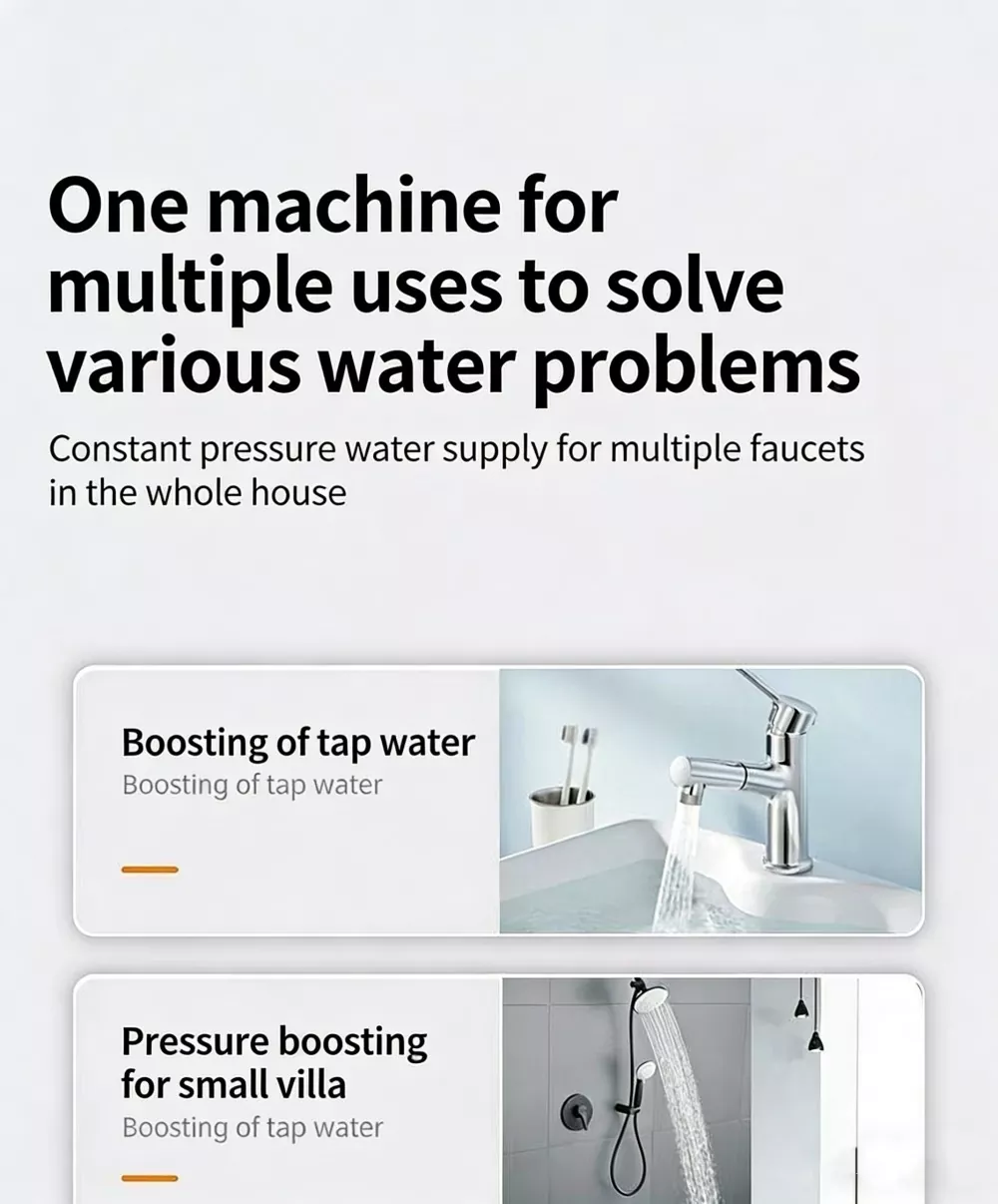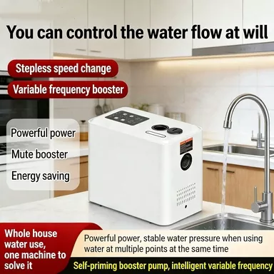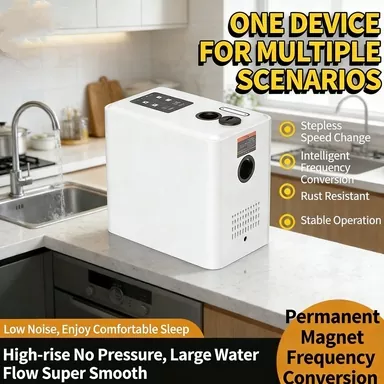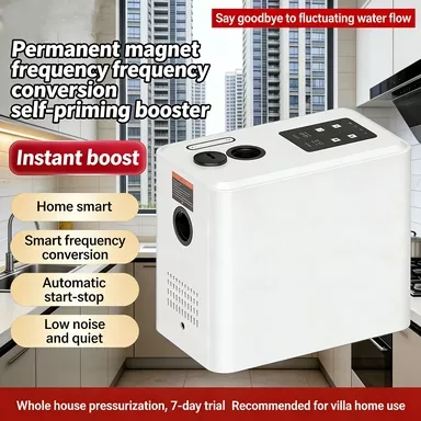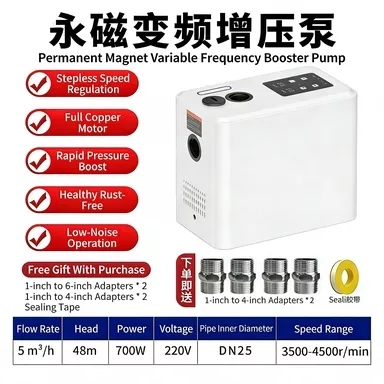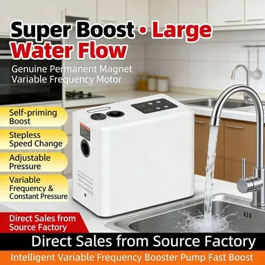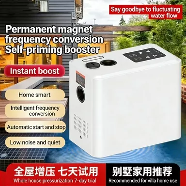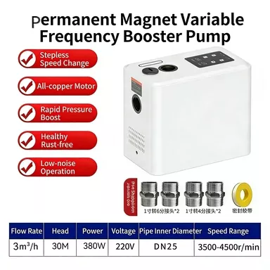 Máy bơm tăng áp biến tần nam châm vĩnh cửu có thể được tùy chỉnh, hoàn hảo cho áp lực nước thấp ở nhà. Khả năng tự hút mạnh lên tới 8 mét, tăng áp nhanh, lưu lượng nước ổn định. Yên tĩnh, tiết kiệm năng lượng, lắp đặt dễ dàng. Lý tưởng cho vòi gia dụng, vòi hoa sen và máy nước nóng.
