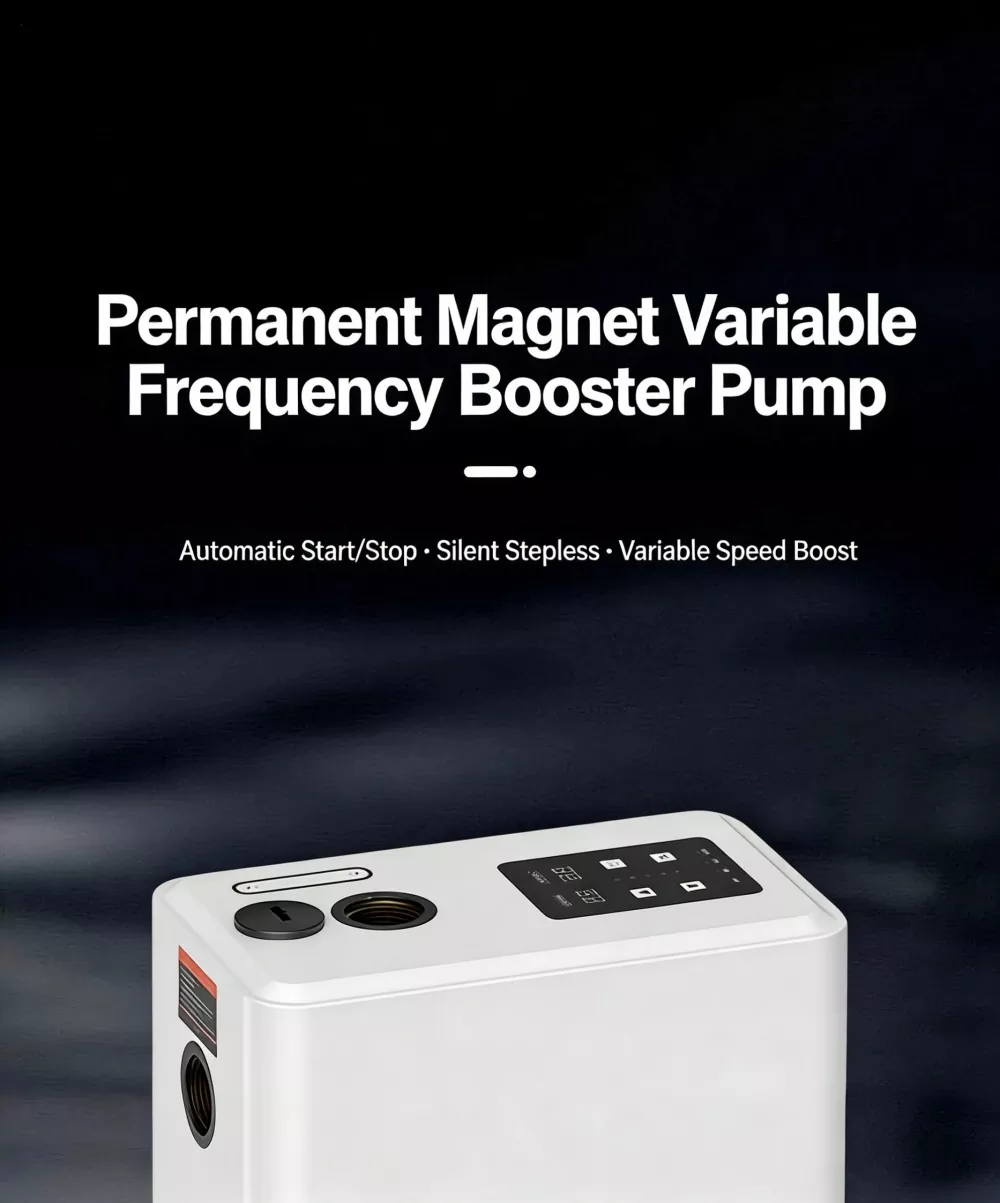 Máy bơm tăng áp biến tần nam châm vĩnh cửu của chúng tôi được thiết kế để giải quyết các vấn đề phổ biến về áp lực nước thấp trong gia đình, tích hợp điều khiển thông minh, hiệu suất cao và thiết kế lấy người dùng làm trung tâm để nâng cấp hoàn toàn trải nghiệm sử dụng nước hàng ngày của bạn.