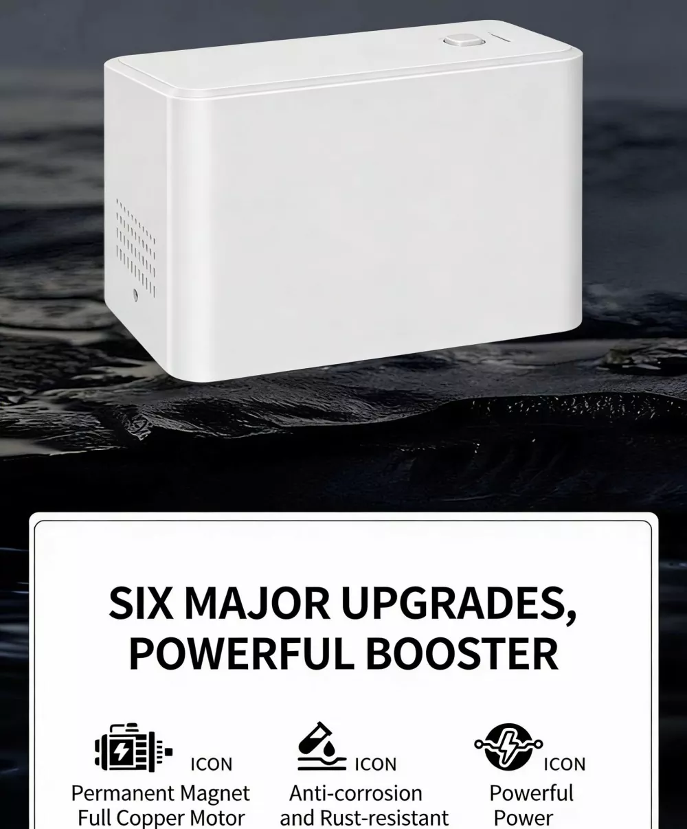 Động cơ tốc độ cao: Động cơ tốc độ cao 6500 vòng/phút tích hợp mang lại công suất tăng vọt, cho ra dòng nước lớn mạnh mẽ và ổn định, giải quyết triệt để vấn đề áp lực nước gia đình không đủ.