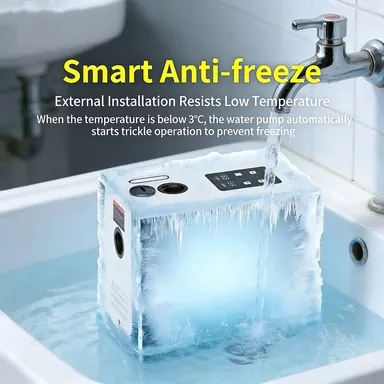 Chống đóng băng thông minh: Với hệ thống cảm biến nhiệt độ thông minh, nó tự động chạy ở tốc độ thấp khi nhiệt độ môi trường thấp hơn 3oC, ngăn chặn hiệu quả thân máy bơm và đường ống nước không bị đóng băng và nứt khi thời tiết lạnh.