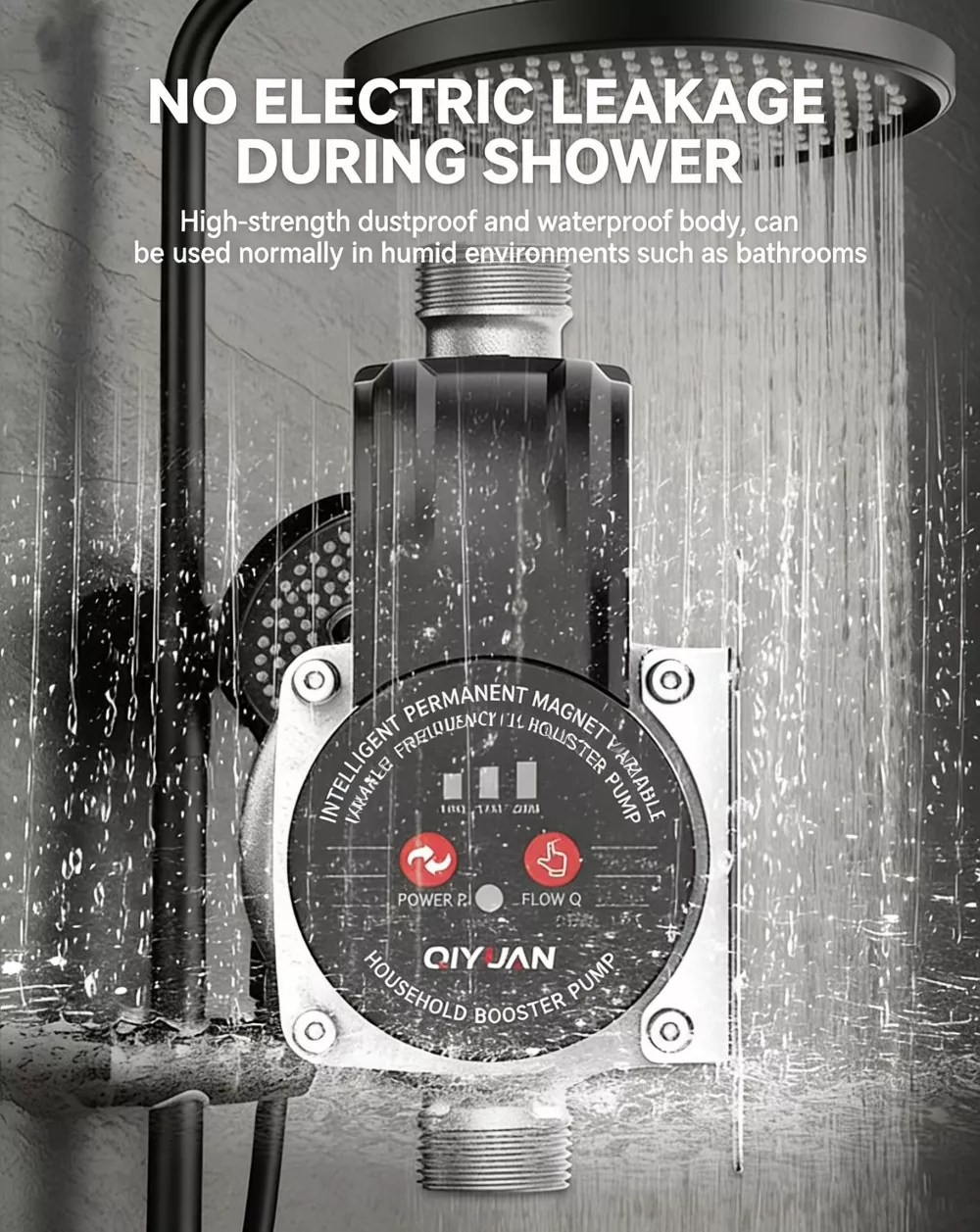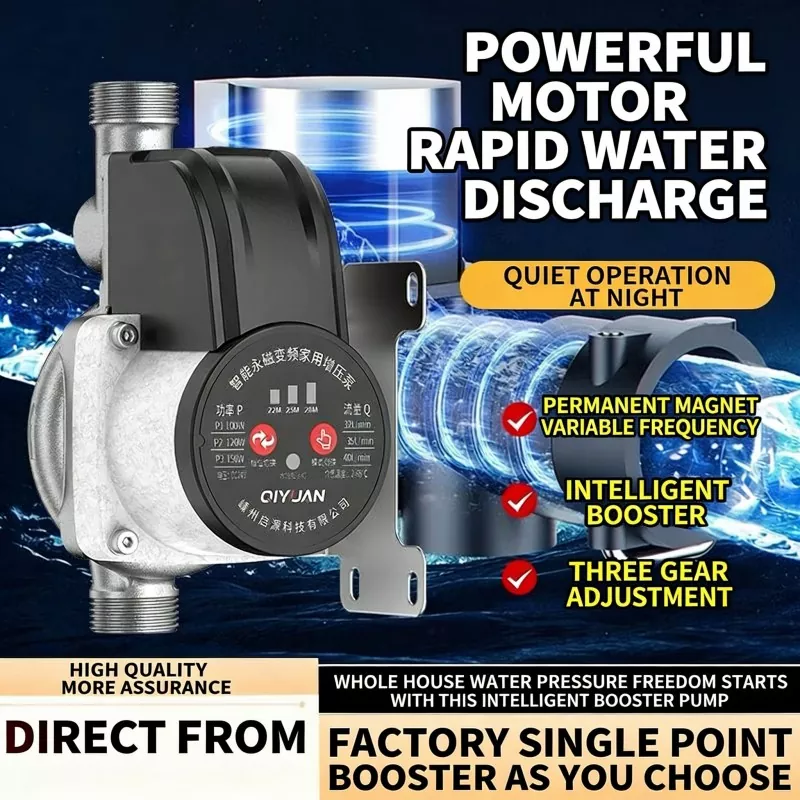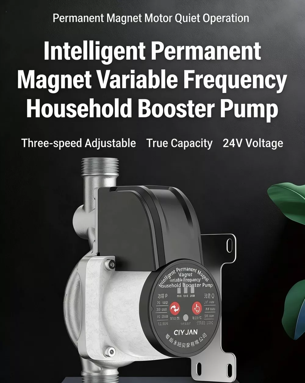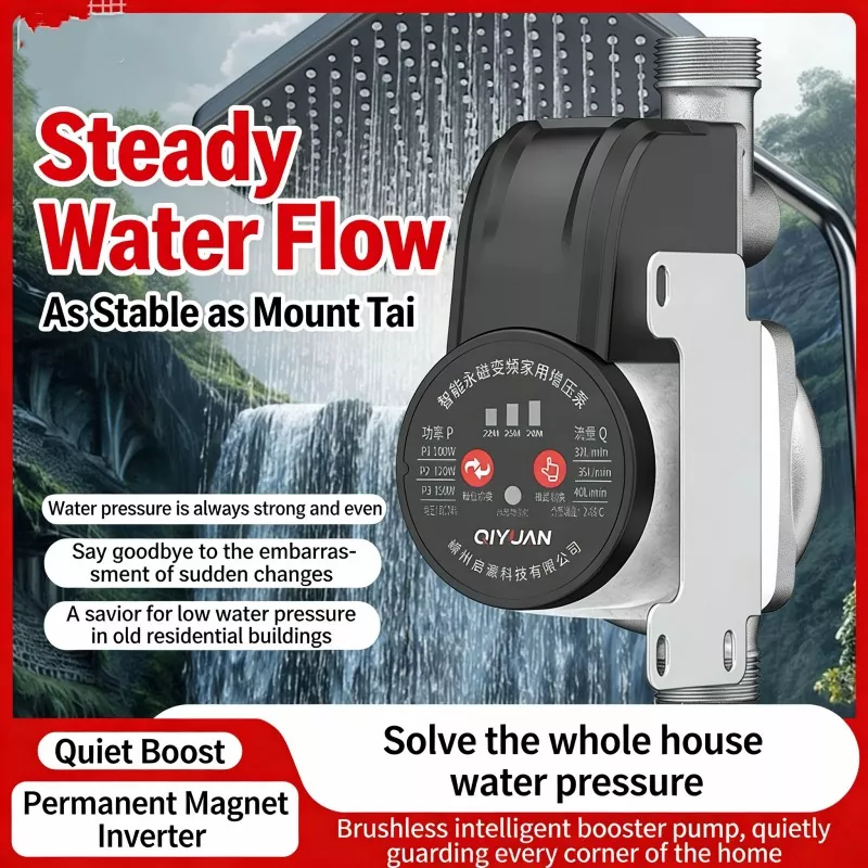 Áp dụng hệ thống điều khiển tần số biến đổi nam châm vĩnh cửu tiên tiến, nó tự động điều chỉnh tốc độ quay theo nhu cầu nước thực tế, với ba mức áp suất có sẵn (áp suất thấp/trung bình/cao). Nó đảm bảo cung cấp nước thoải mái đồng thời mang lại hiệu quả năng lượng vượt trội, tiết kiệm năng lượng hơn 30% so với máy bơm tăng áp truyền thống.