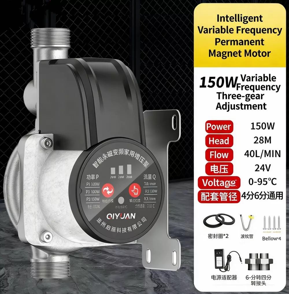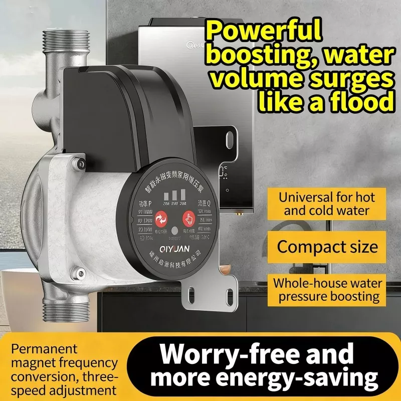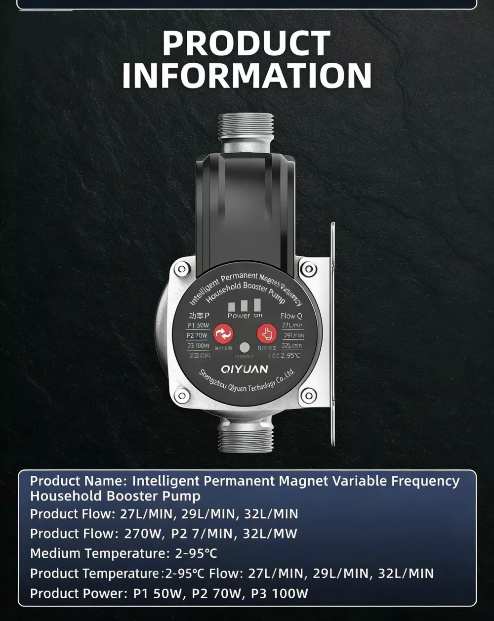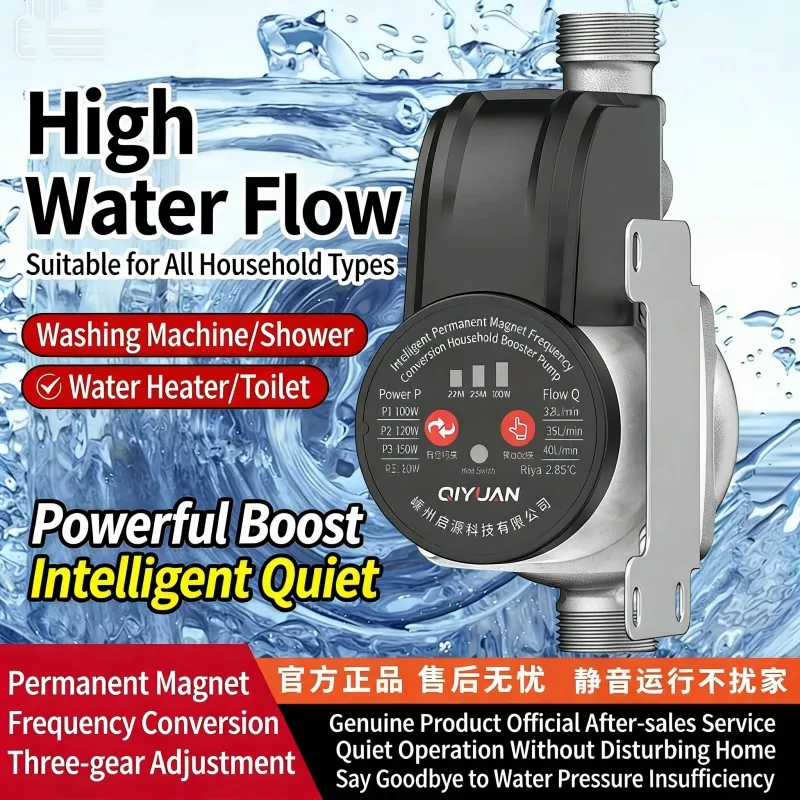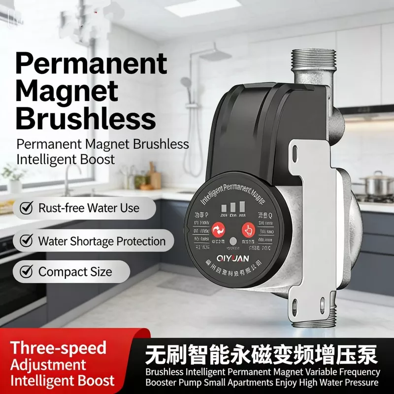 Áp dụng hệ thống điều khiển tần số biến đổi nam châm vĩnh cửu tiên tiến, nó tự động điều chỉnh tốc độ quay theo nhu cầu nước thực tế, với ba mức áp suất có sẵn (áp suất thấp/trung bình/cao). Nó đảm bảo cung cấp nước thoải mái đồng thời mang lại hiệu quả năng lượng vượt trội, tiết kiệm năng lượng hơn 30% so với máy bơm tăng áp truyền thống.