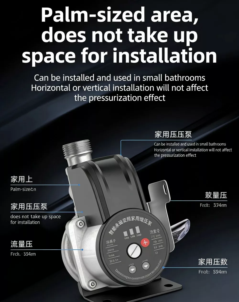 Máy bơm tăng áp thông minh cỡ nhỏ là thiết bị tăng áp lực nước thông minh dành cho gia đình, hiệu suất cao, được thiết kế riêng để giải quyết vấn đề áp lực nước máy không đủ trong gia đình sử dụng hàng ngày. Ưu điểm cốt lõi của nó như sau: